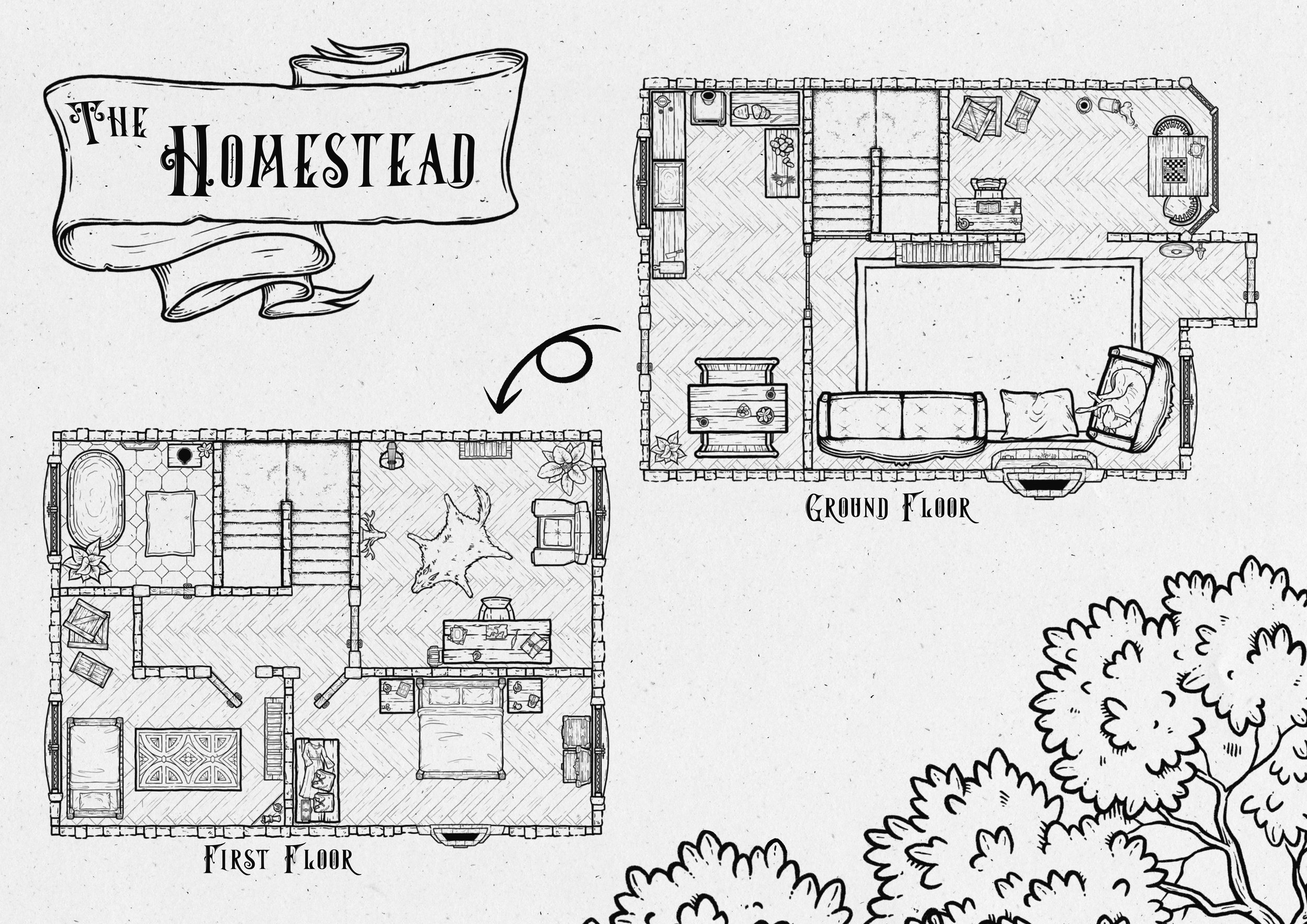 The Homestead by Anthony O’Mahoney (@the_sunset_cartographer) | Created with The Inn & Tavern Map Builder, & The Aetherion Font