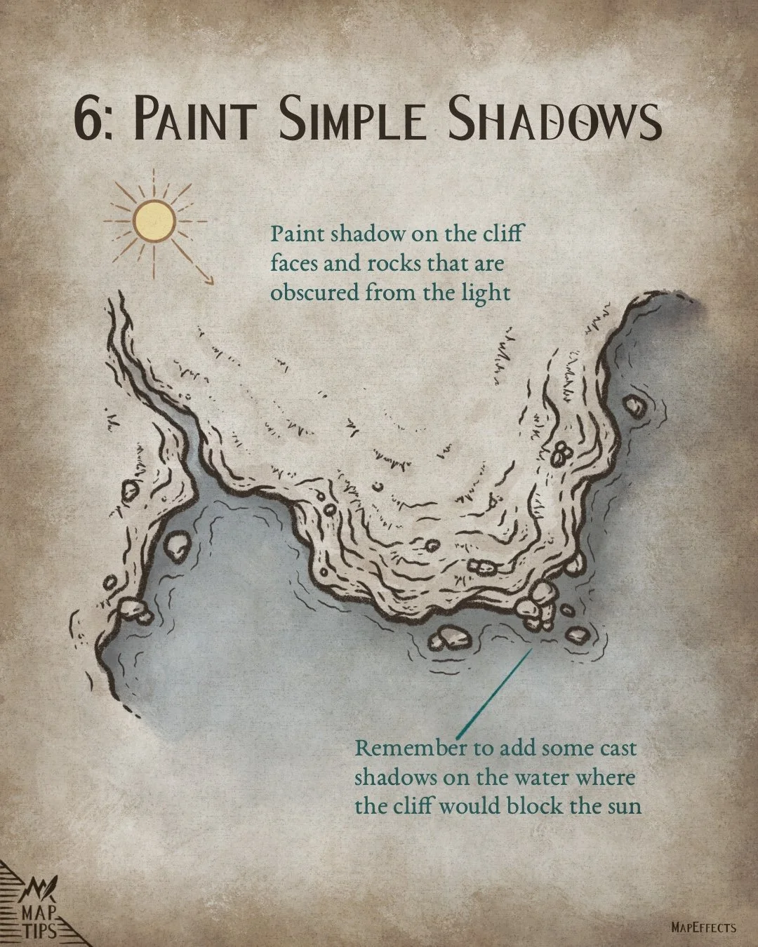 One of the biggest challenges with fantasy maps in a top down perspective is they tend to look a bit flat. Fortunately, there are some simple tricks you can use to build up the layers of the landscape to give a sense of depth. In this Map Tip we’ll be looking at how to draw cliffs on a coastline in this perspective and make them really stand out in your map.